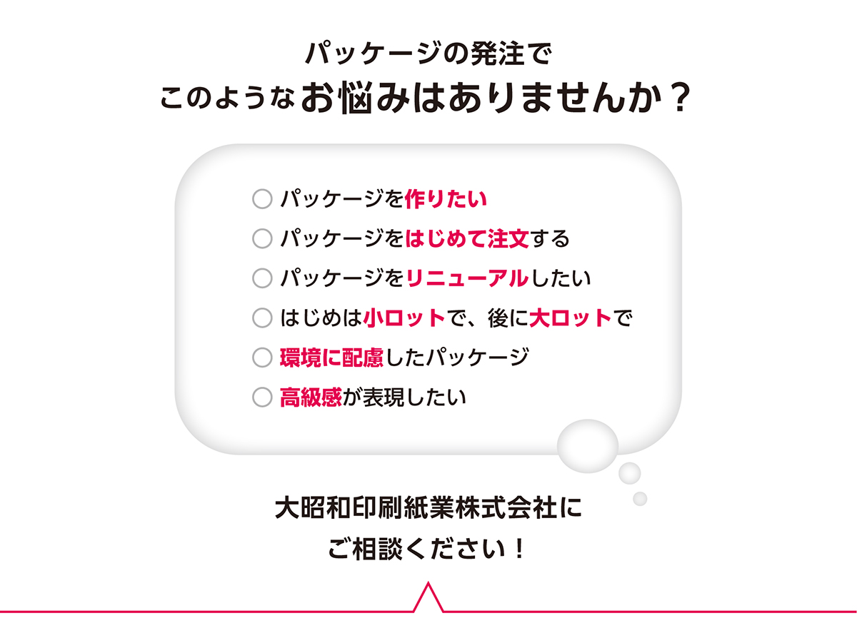 売り場で目立つパッケージや、手に取った人が特別感を感じられるパッケージを提供いたします。